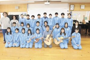 聖南中に地元産楽器贈る 横山正さんギターなど