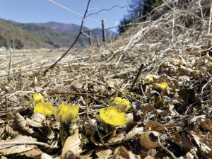 フクジュソウ咲き始める 松本市赤怒田の群生地