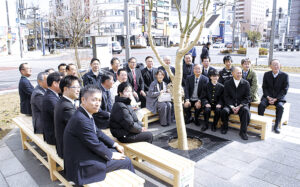 だれでもベンチ設置 松本駅お城口広場に 筑摩野中・下平さん考案 UD研究会が製作