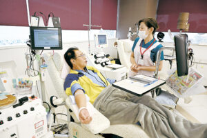 松本市大手3の四柱神社(宮坂信廣宮司)では午後4時に神事が始まり、参拝者約300人が訪れた。夏本番を感じる強い日差しと暑さの中、参加者は「水無月の夏越の祓する人は千歳の命のぶといふなり」という古歌を唱えながら、境内に据えられた直径2.5メートルの茅の輪をくぐった。