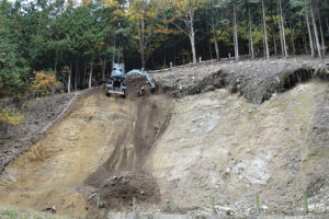 本年度当初予算には、新平出博物館整備事業費として地形測量委託料454万円が盛られている。平出遺跡公園北側のガイダンス棟の隣接区域で、候補用地の現況を調査し設計の基礎になる資料を作成する。「手戻りがない範囲」(博物館)での作業だ。