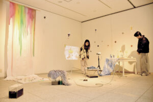 初日は、初対面の参加者が打ち解けるよう、「地域カルタ」づくりをした。安曇野にまつわる読み札を日本語で考え、英語にした。子どもたちは学生に英語やスペルを聞いたり、安曇野の良いところを伝えたりしながら「冬寒いアルプス山は雪きれい」「昔から歌われてきた安曇節」といった文を作って絵札も描いた。