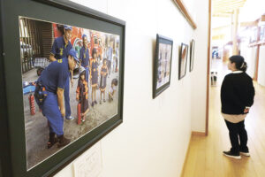 布製品の製造工程で出る端切れや糸を活用することで「モノを最後まで大切にする」価値観にも触れる内容。名古屋市の福祉施設「ひょうたんカフェ」との連携企画で、同施設の利用者が考案した「まる織り」の技法を基に、自由な発想で色と形を編み出した。午前・午後の部に分かれたWSでは、村と名古屋をオンラインでつなぎ、子供たちと施設利用者が交流した。