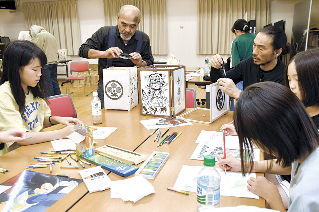 作業は大人が枠の組み立て、子供たちは絵柄付けと役割分担して進め、ある程度の数がそろったところで試しに点灯した。祖父と父とともに参加した芳川小学校4年生・関ひかりさん(10)は「皆で作業して楽しかった。明かりのともった灯籠はきれいだったので、飾られるのが楽しみ」と話していた。
