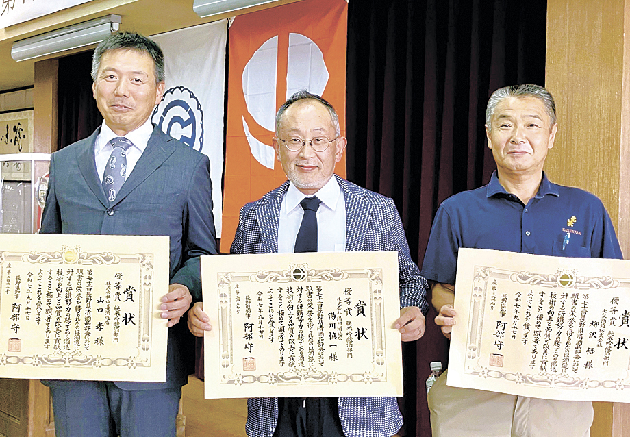 木曽郡内3酒蔵が知事賞 県清酒品評会 湯川、中善、七笑 純米吟醸で