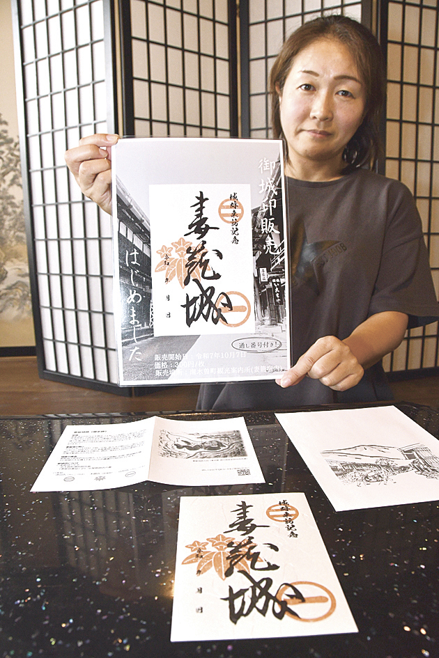 御城印は約半年をかけ準備、7日に発売した。資料を調べ、町博物館の協力や監修も受けた。作成に携わった同協会の矢澤純子さんは「御城印を通して妻籠城や宿場について知り、興味をもってもらいたい」と話し、同会員の嵯峨理恵子さんは「工夫を詰め込んだ仕上がりになった。足を運んでもらうきっかけになれば」と願う。