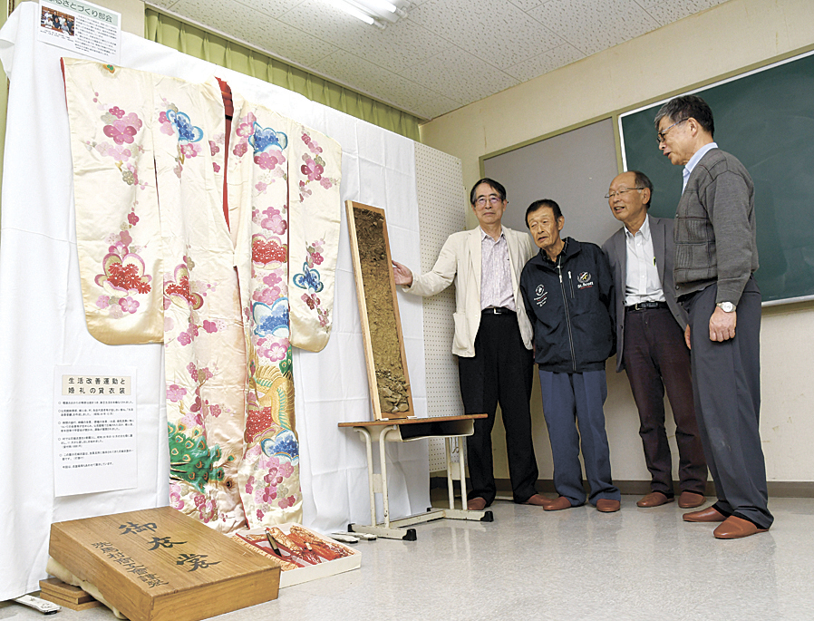 地区誌は自然や歴史、文化などの分野で7章立て構成を予定し、七つの部会で委員らが調査を進める。第7章「ふるさとづくり」では、戦後の貧しい時代の生活改善運動を取り上げた。旧洗馬村が花嫁衣装を購入し、貸し出した事業を紹介した。昭和29(1954)年10月の文化祭に衣装を展示、翌月に1000円で貸し出しを始め十数年続いたという。結婚で洗馬を離れる女性が県外の挙式で使う事例もあり、市洗馬支所の土蔵で長年保管されてきた。中原文彦編集委員長(72)は「文化祭に来て現物を見てほしい」と話す。