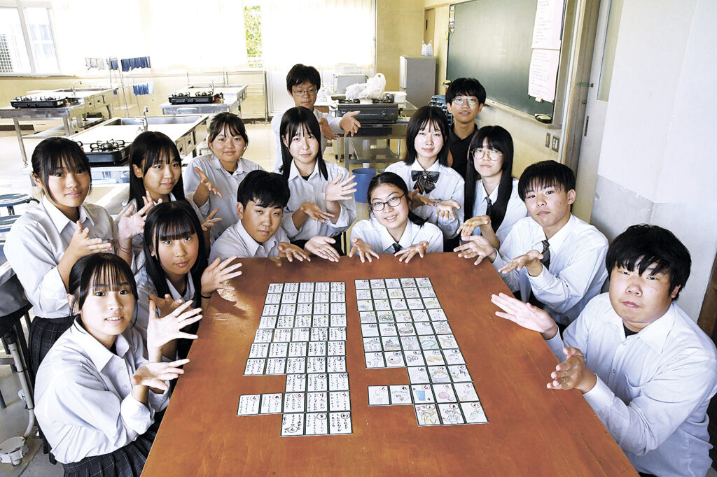 新しい「松本かるた」 鎌田中3年生14人が手作り