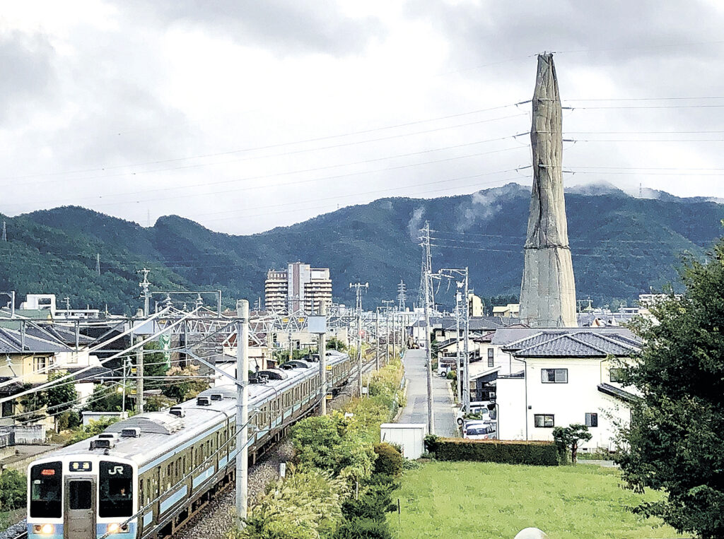 巨大な“塗り壁”が一夜にして出現し、数日すると消えてしまう現象が塩尻市内で相次いでいる。特撮のSF映画をも連想させる光景に、度肝を抜かれて目を疑う市民の姿も。実はこれ、塗り替え作業に伴い防護ネットで覆われた東京電力パワーグリッド(東京都)の送電鉄塔で、今後も市内のどこかで目にする機会がありそうだ。