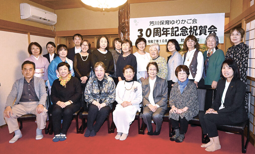 松本市芳川公民館で若い母親たちが講座で学んだりサークル活動をしたりしている間、子供たちを保育するボランティア活動をしてきた「芳川保育ゆりかご会」(上條佳寿子会長)が今年、発足30年目を迎えた。17日に並柳2の民芸旅館・深志荘で記念式典を開き、会員らが芳川地区の親子に寄り添って子育て支援に取り組んできた30年の歩みを振り返った。