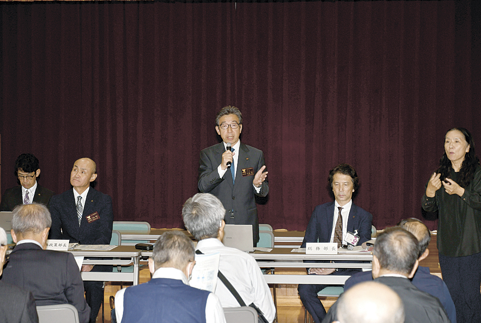 百瀬市長が来年度の予算編成方針を説明した後、地元区長会が「防災体制」の議題を挙げ、参加者が自由に意見を述べる時間もあった。市が概算事業費38億円余で計画するレザンホールの改修について、参加した男性は「40億円はかけすぎでは」と尋ねた。百瀬市長は人件費や資材費の高騰の影響を踏まえ事業内容を説明し、「税金を使うので投資しながら最大の効果が生めるような工事設計を進める」と話した。