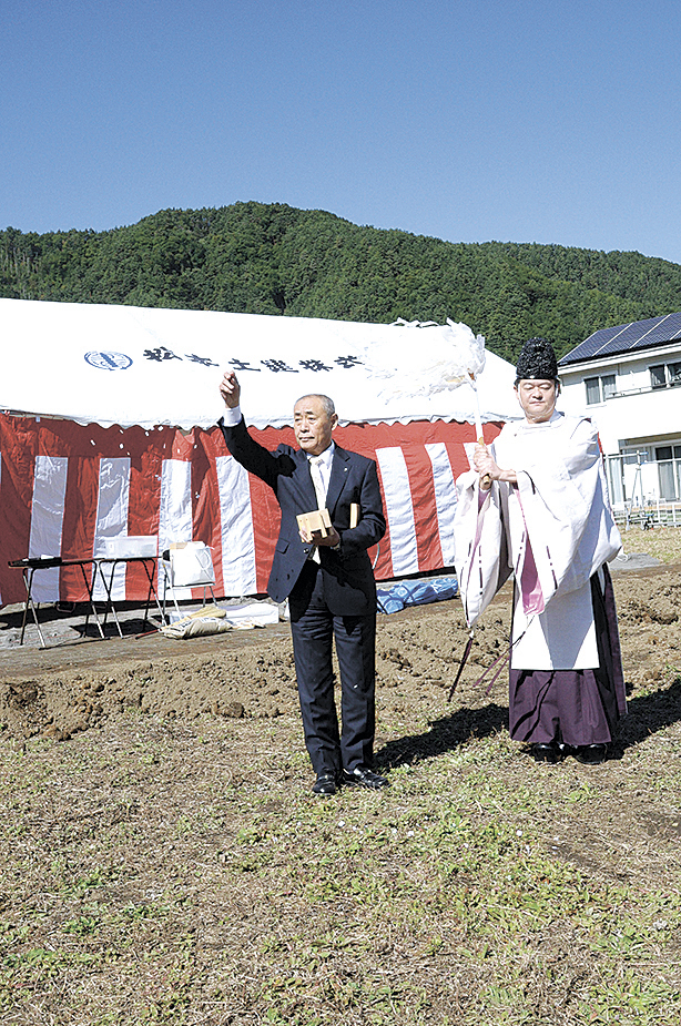 村が移住・定住に特化した住宅を整備するのは初めて。小林弘幸村長は「(村内では)空き家バンク、民間アパートとも在庫ゼロ。人口減少を食い止める施策の一つとして村営住宅建設が急務だった。無事の完成を心より願う」とあいさつした。
