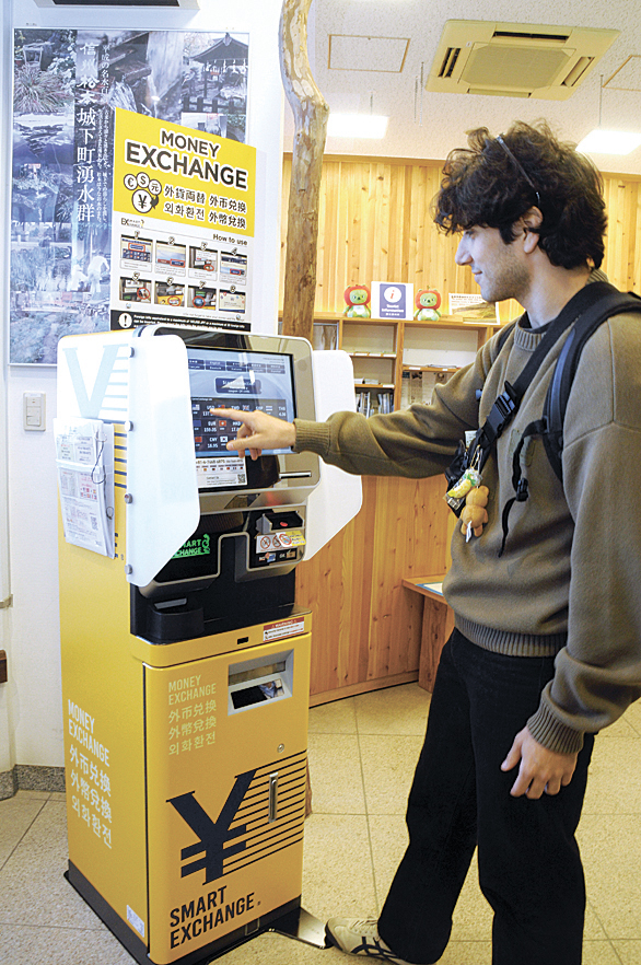 導入した外貨両替機は「スマートエクスチェンジ」で、ドル、ユーロ、元など12種類の通貨に対応し、多言語(10言語)の操作が可能。市観光案内所では、初日は午前10時半に稼働してから午前中までに4件の利用があった。