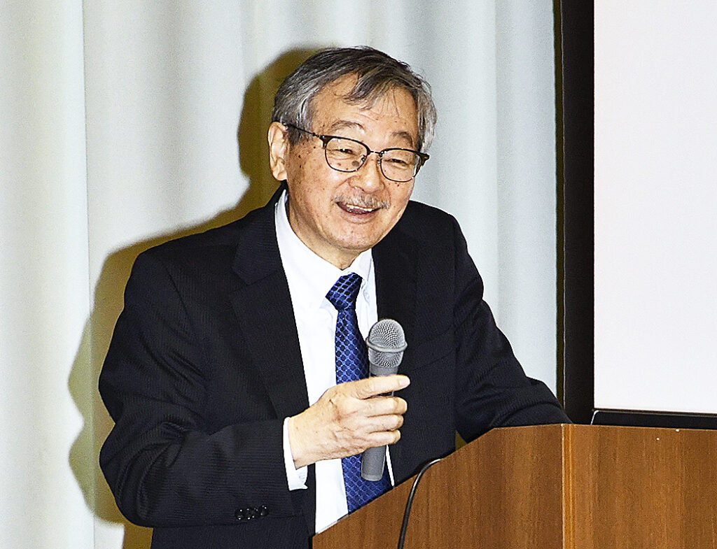 学術賞「クラリベイト引用栄誉賞」を昨年受賞し、今年のノーベル賞有力候補の一人として名前が挙がった信州大学特別栄誉教授・堂免一成さん(72)が30日、松商学園高校(松本市)で講演した。普通科文理コースと特進コースの1年生約260人に向け、分かりやすい言葉で自身が取り組む光触媒や水素製造システムの研究について話した。