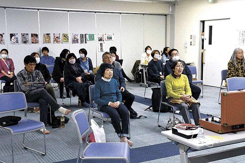 鑑賞会は昔を思い出すことで認知症の予防にもなればと、毎月同公民館が開く誰もが気軽に集える場「みつばちかふぇ」の一環で開かれた。
