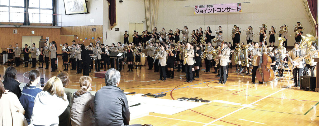 全国銀賞の演奏を地元で披露 鎌田小金管バンドと鎌田中吹奏楽部