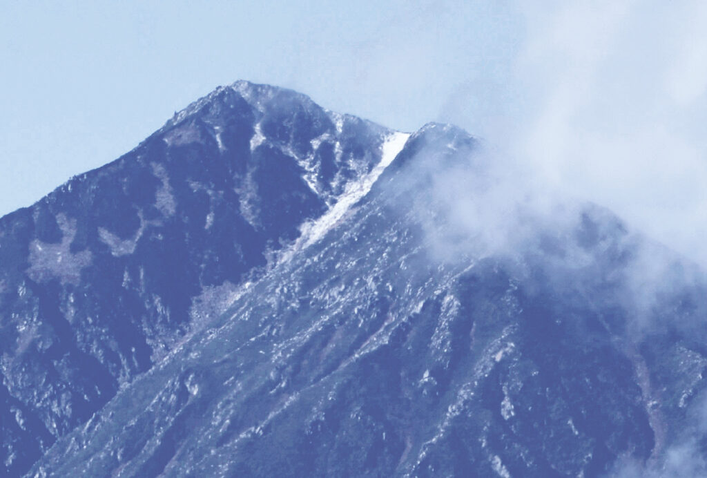 松本地方で1日、北アルプス・常念岳にうっすらと雪がかぶっている様子を見ることができた。今季の初冠雪となる。