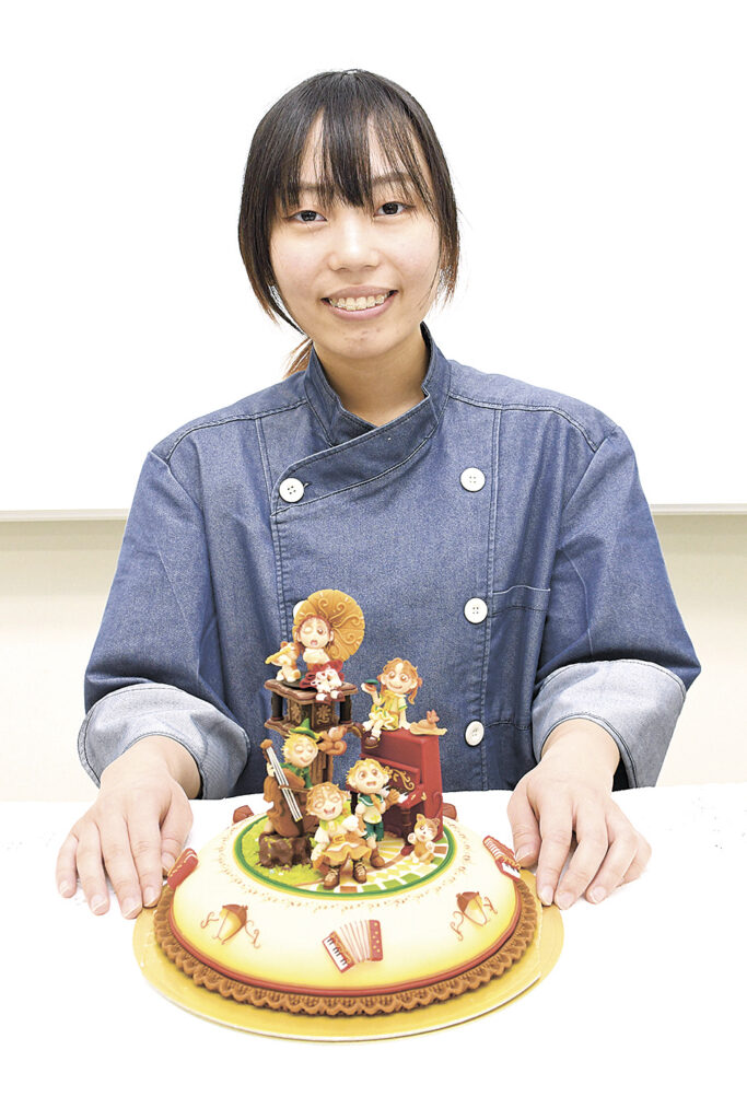 専門学校未来ビジネスカレッジ(MIT、松本市渚2)のパティシエ・ブーランジェ学科2年・三浦梨瑚さん(20)=安曇野市明科中川手=は、国内最大の洋菓子コンテストとされる「2025ジャパン・ケーキショー東京」に出品し、学生部門で入賞した。アーモンド粉と砂糖を練ったマジパンで音楽隊をイメージした愛らしい人形のデコレーションを施し、造形のまとまりや目を引く仕上がりが高く評価された。