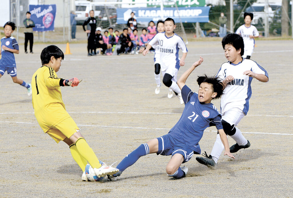 第40回市民タイムス少年サッカー新人戦・カガミカップ(市民タイムス、松本市サッカースポーツ少年団連合会主催、カガミ・ホールディングス協賛)が2日、松本市内で開幕した。節目の大会に県内各地から小学生の60チームが参加。初日はあずさ運動公園と島立小学校で23チームによる計20試合が行われ、南箕輪フットボールクラブジュニア、FCリガーレ上田、FC戸上Jrが準々決勝進出を決めた。