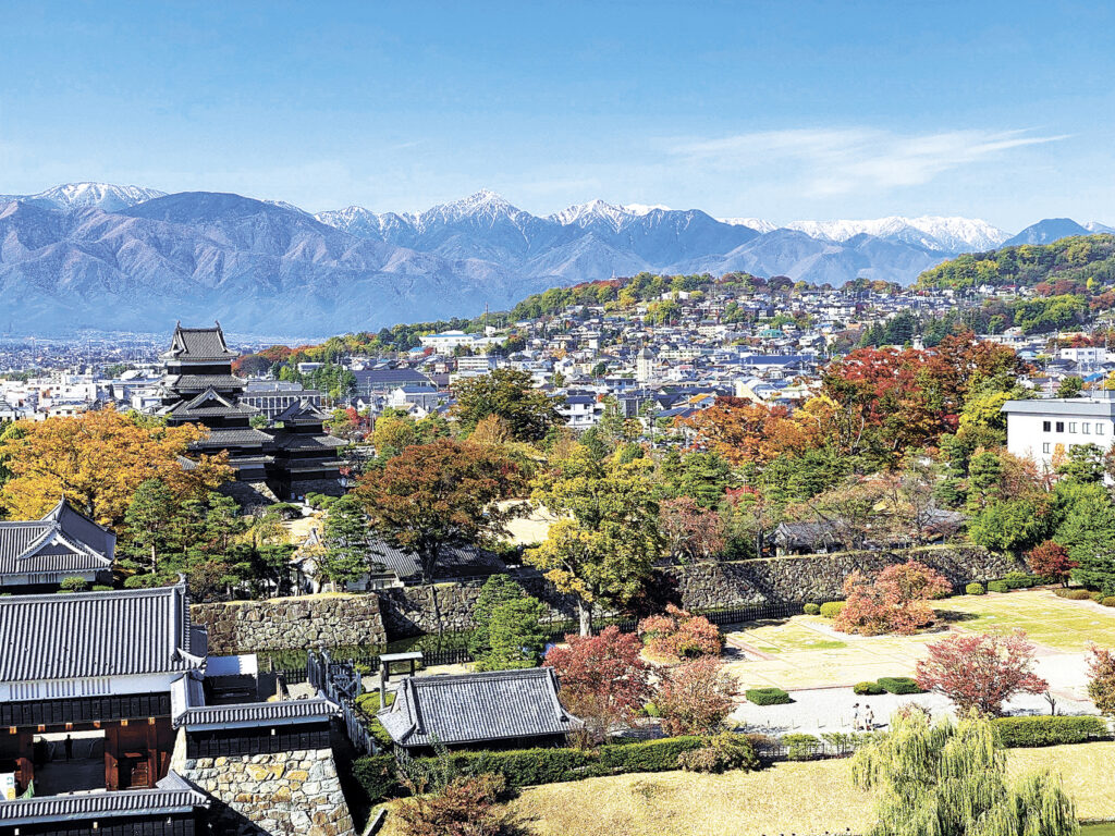 紅葉が始まった松本城周辺と北アを同時に眺められる市役所本庁舎最上階の展望室には、観光案内所で紹介されたという旅行者や外国人観光客が次々に訪れ、眺望を堪能していた。信州の複数のお城を見に訪れたという兵庫県豊岡市の市職員・石塚凌さん(26)は「山が白くなっていて感動した。紅葉と相まってすごい」と感激していた。