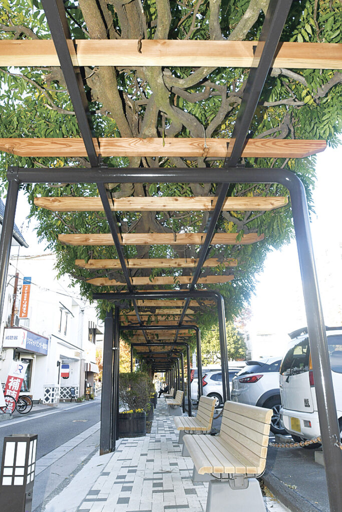 松本・中町通りの藤棚、再整備が完了 ベンチ増やして憩いの場に