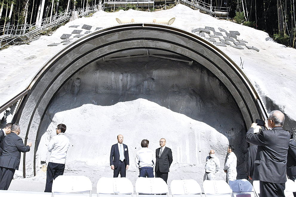 同工区は、阿寺側の道路約700メートルが完成している。今後は、十二兼から読書の戸場地区側への2号トンネル掘削や、戸場の柿其川に橋を架け道路を接続する工事なども行う。