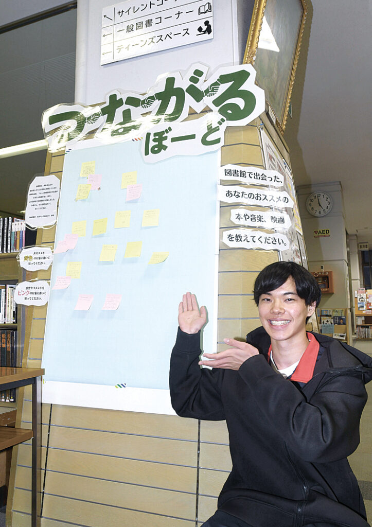 飯塚さんは市中央図書館の近くに住んでいて、週1回ほど来館する。「大の本好き」という飯塚さんが「図書館は本が好きという同じ趣味を持つ人が集まる場。何かで交流が持てないか」と考え、市若者参画課を通じて図書館に掲示板の設置を提案した。