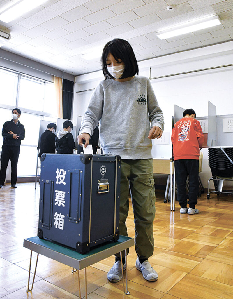 松本税務署と松本市選挙管理委員会事務局がタッグを組み、松本地区の小学校で模擬投票をするのは初の試みだ。