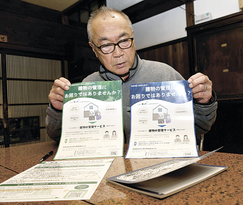 空き家管理は、空き家の発生予防の観点も含めた建物管理の有料サービスの仕組みを、区内に建物を所有する区民と、区外の人向けにそれぞれに構築した。「屋外中心」と屋内を含む管理に分け、1カ月1時間または2時間の作業の月額制(1500~3450円、別に初期費用5000円)を設定。10月初めに区民に通知し、今月中には区外に住む建物所有者にも通知を郵送する。区民では来年から利用を希望する人もいて、管理人も募集した。