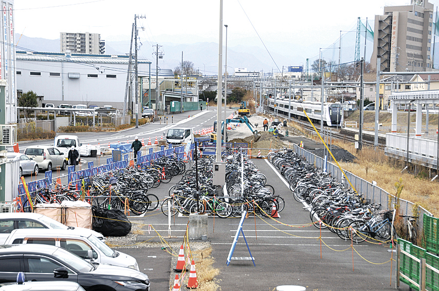 現在進めている南側の自転車駐輪場の工事を終えた後、ロータリーの工事に着手する。完成後は北側を公共バス、タクシーの乗り場、南側を一般の送迎車のスペースとして活用する。市建設課の神戸順課長は「駅利用者の増加でロータリーの整備は必然。一般と公共の乗り物の停車位置を分けることで混雑を回避したい」と話している。