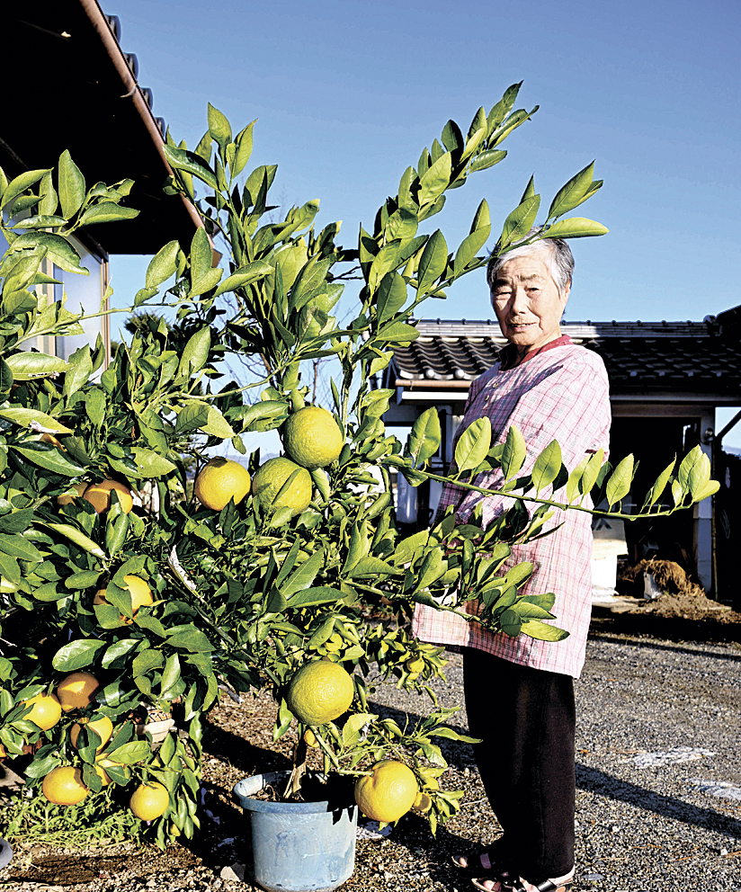 稲田さんは「今年も立派な実がなったよと仏壇に供えたい。自分が元気な限り、枯らしちゃいけないね」とほほ笑む。
