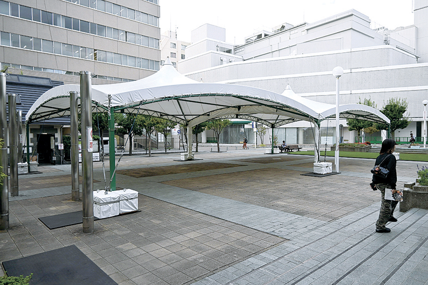 都市公園に大型テントを常設する場合は都市公園法で公園の敷地に対し最大で10%の制限がある。市公園緑地課によると、花時計公園の敷地面積は2500平方メートルで、250平方メートル未満のテント設置が可能だ。