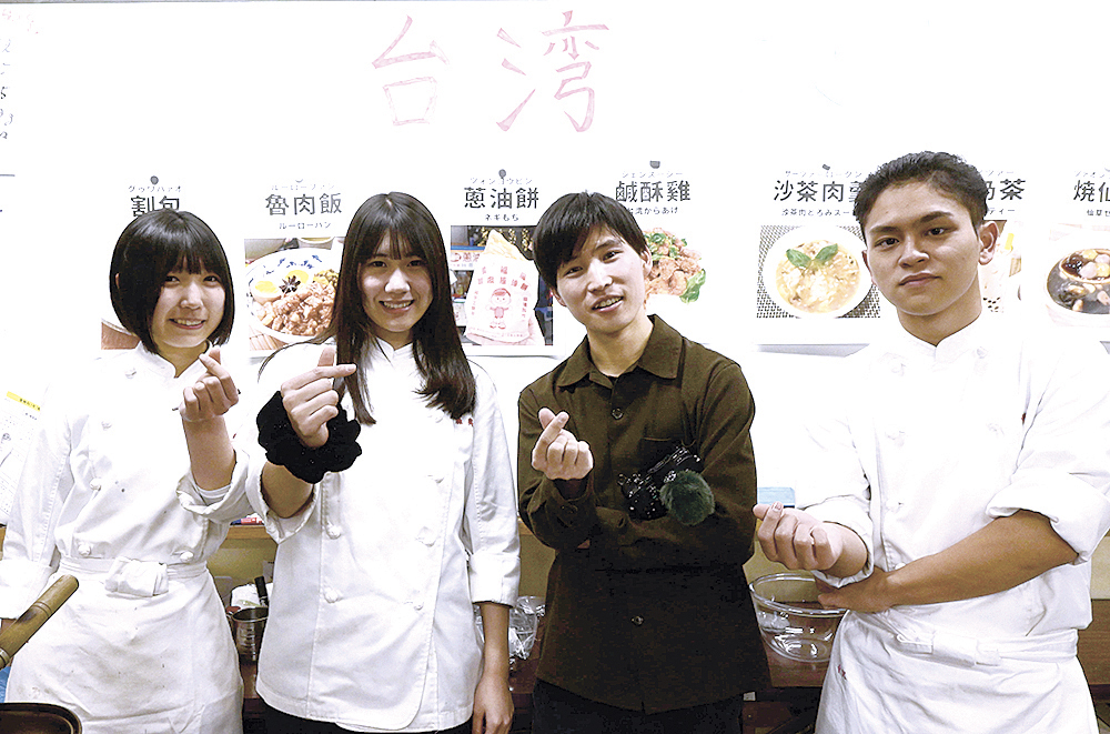 動画の制作を兼ねて今年、「母校の生徒に台湾を知ってほしい」と台湾出身の料理人を講師に同校で台湾料理教室を開催。その中で特に興味を示した食物科3年の森奥彩葉さん(18)、秋山こはなさん(17)、寺沢櫂さん(18)を夏休みに台湾へ招待し、現地の高校の食物科の生徒と台湾料理を作り、台湾ならではの料理の屋台が並ぶ夜市を訪問する体験を提供した。秋山さんは「台湾の人たちは温かくて、にぎやかな夜市も楽しくて台湾が大好きになった」と話す。