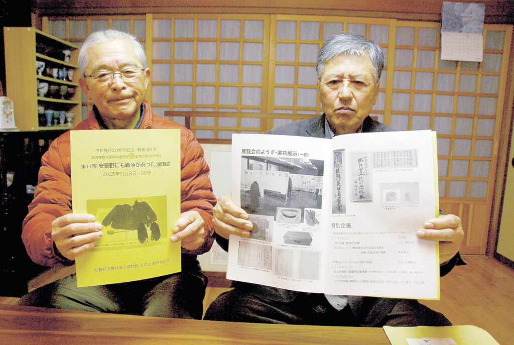 安曇野市豊科郷土博物館友の会戦時生活部は、戦後80年を機に戦時体験談や資料を全市的に集めた調査の結果を冊子にまとめ、市内の学校や博物館施設などに配布している。戦争体験者の生の声を平和教育に役立ててほしいとの思いからで、急逝した太田寛市長も生前、教材としての活用に賛同していたという。