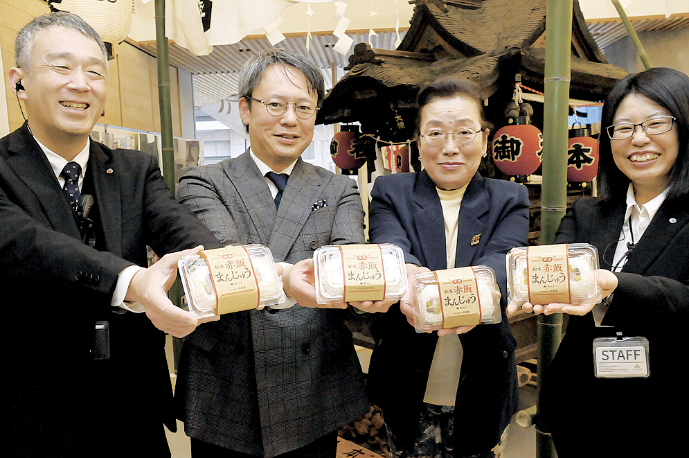 赤飯まんじゅうで新年を祝おう 井上・万寿堂・松本市立博物館が共同企画
