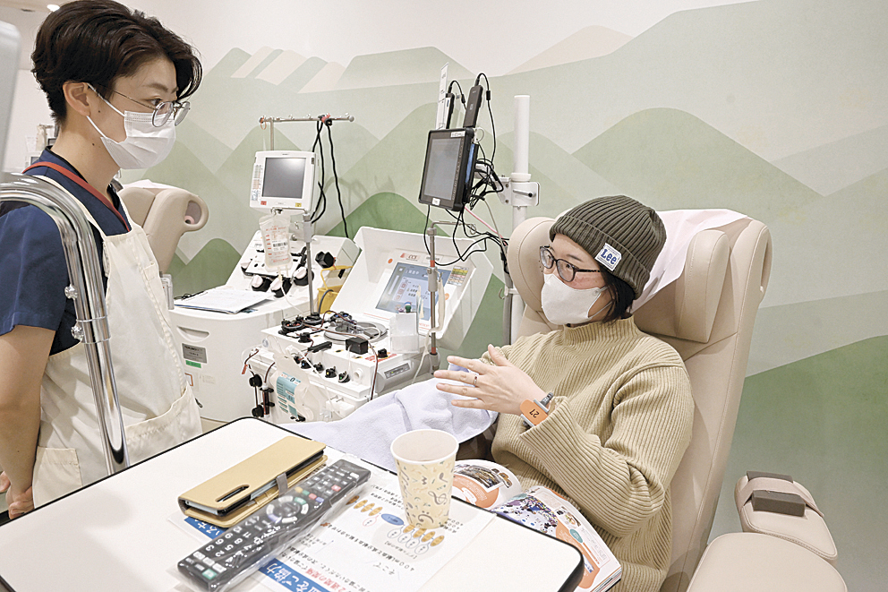 県赤十字血液センターの松本献血ルーム(松本市中央1)には、年の瀬が迫った30日も多くの人が訪れ、献血に協力する姿が見られた。「気楽にできる社会貢献」「(自分の血液を)使ってもらえるならありがたい」―。さりげない善意が社会を支えている。