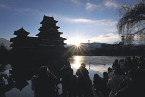 新しい年を迎え、中信地方の神社や寺院は多くの初詣客でにぎわっている。1日は朝から晴天に恵まれ、各寺社では参拝者が長蛇の列をつくった。家内安全や商売繁盛、学問成就、世界平和など、それぞれの思いを胸に手を合わせ、絵馬やお守りを買い求めたり、おみくじを引いて今年の幸先を占ったりした。