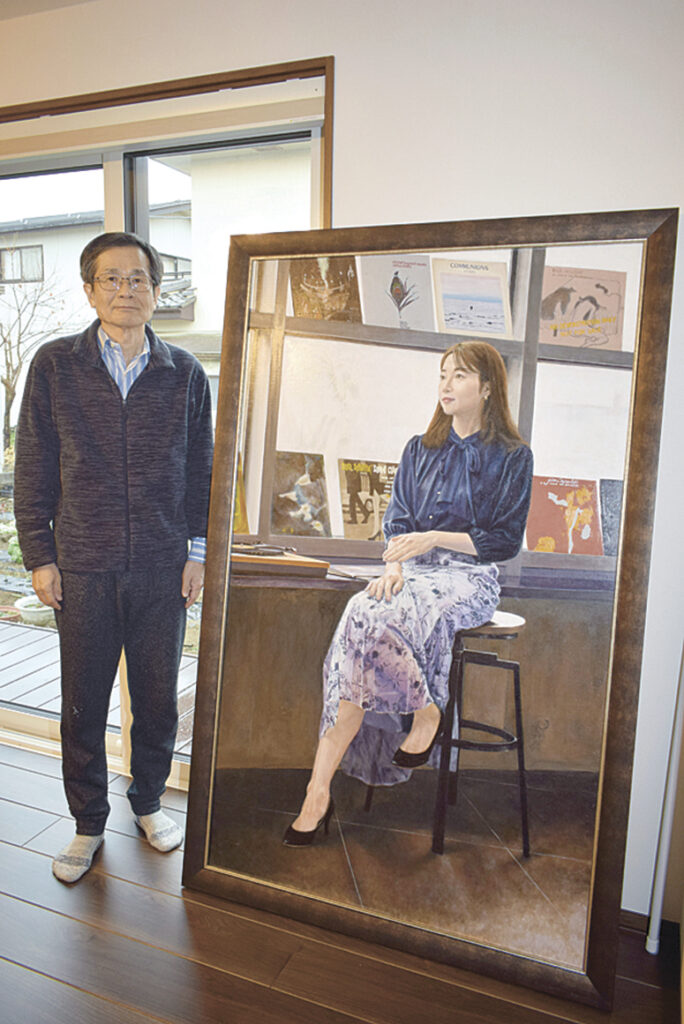 絵を描き始めたのは、退職後の57歳の時。東京都内に単身赴任していたころ、絵画の鑑賞や解説を聞く催しに何度も参加した経験があり、描くことは面白そうだなという思いが湧いた。塩尻市内外の美術団体に所属して絵画教室で指導を受けた。この4年間は、武蔵野美術大学通信教育課程を受講した。風景や静物などさまざまな題材に挑戦したが「人物を描いていると実在しているかのような存在感が増す」と写実的な人物画の制作に没頭している。