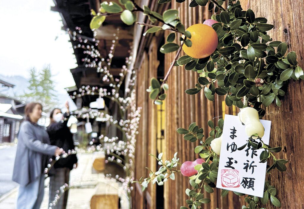 繭玉飾り 宿場に華やぎ 妻籠観光協会女性部