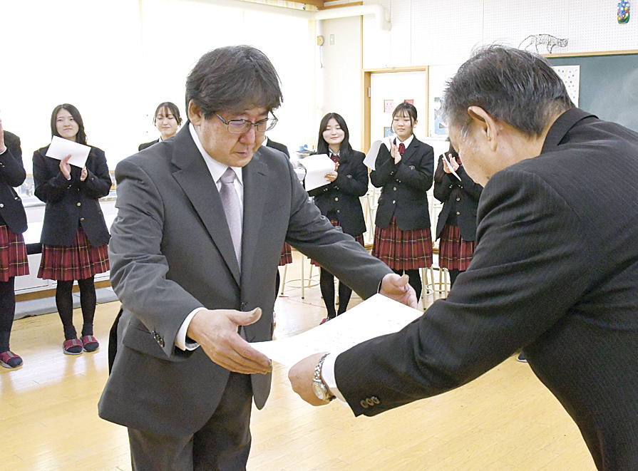 松本第一高校(松本市)美術教諭の飯島賢治さん(62)=松本市蟻ケ崎5=の作品が、国内最大級の公募美術展「第118回日展」(公益社団法人日展主催)の工芸芸術の部門で特選に選ばれた。13日に同校で褒賞授与が行われ、生徒が見守る中、萩原清理事長から表彰状が手渡された。