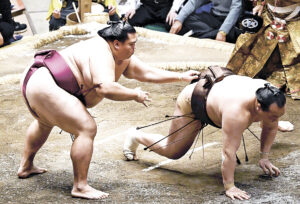 相撲稽古にレスリング 県内選手が木曽で合宿 国スポへ競技力向上