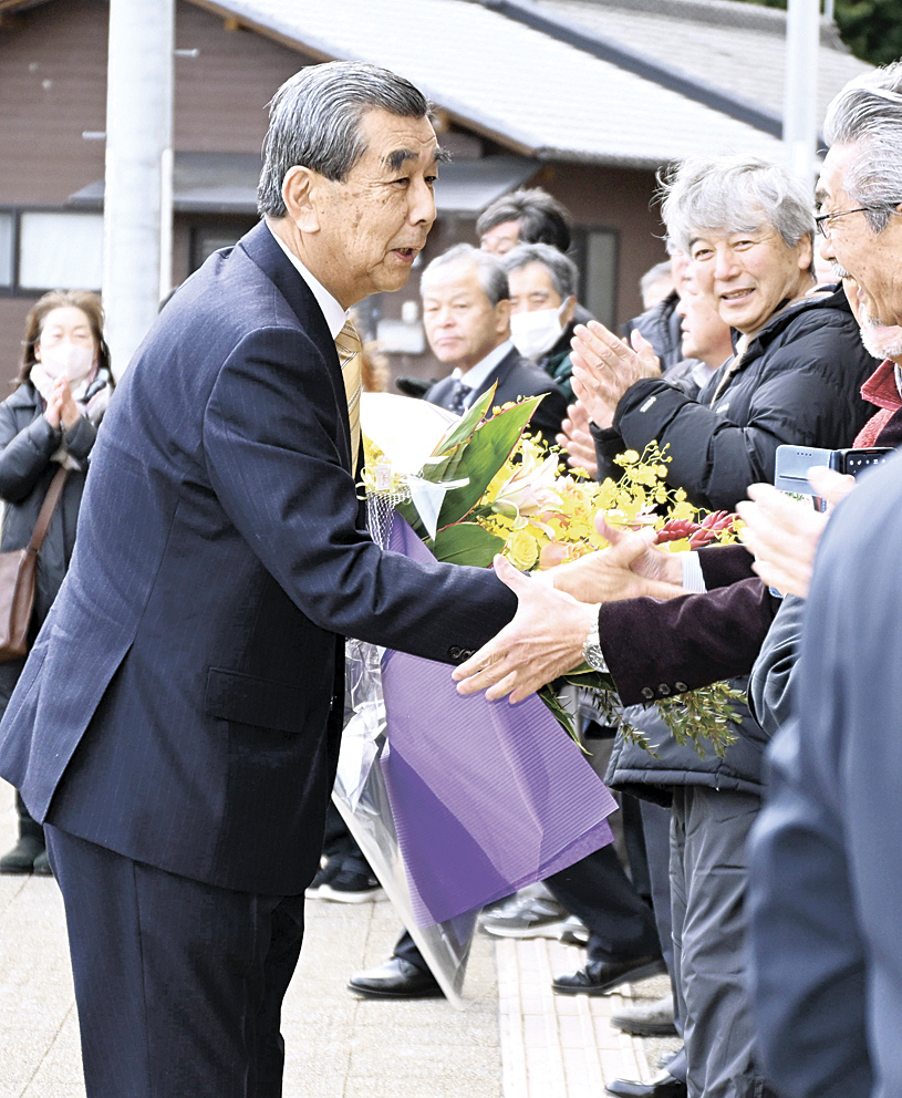 職員を代表して橋渡勝也教育長は「安曇野市という大型船が船長を失い停泊していた。新たな船長の中山市長を迎えて力強く大海原に出航する日。乗客の市民が未来に希望を持てるまちづくりを、中山市長のもとで乗組員の職員が一丸となって取り組んでいきます」と応えていた。