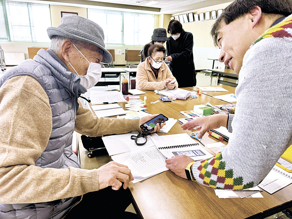 2回目の22日は、スマホ画面を印刷する工程に挑戦した。Wi―Fi(ワイファイ、無線接続)による印刷は、有線接続とは違うスマホ特有の難しさもあったが、繰り返すうちに慣れ、できると笑顔がこぼれた。参加した地元の唐澤達夫さん(84)は「説明書ができれば便利だけれど、まだまだ遠い道のり」と苦笑いだった。