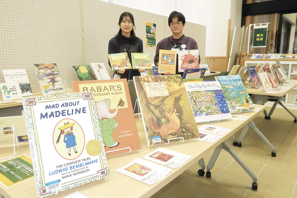 町民の女性から昨年寄贈された約60冊は、データ入力やラベル張りなどの作業が終了し、今回初公開となる。欧米各言語やスワヒリ語、タイ語など約10言語で書かれた作品が並ぶ。各寄贈本の邦訳文が1冊にまとめられた本があり、合わせて読むと理解が深まる。絵柄、装丁などがさまざまで、眺めているだけでも楽しい。未邦訳本が多い一方、「マドレーヌ」「ぞうのババール」など日本でおなじみのシリーズもある。
