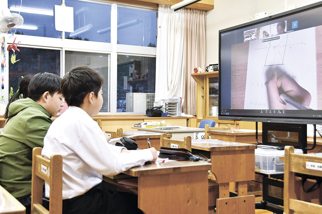 昨年11月から今月19日まで、計12回の開催日を設ける。生徒たちは希望する日に参加し、テレビ画面を通じて映像や音声をつないだ学生とやり取りしている。