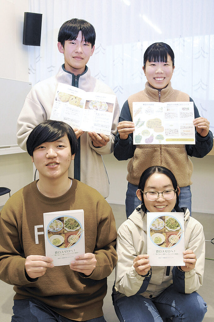 冊子の制作は、5日に松本市立博物館(大手3)で開かれた産官学による「市食品ロス削減連絡会」で報告された。他にプロジェクトリーダーの石橋淳光さん=工学部1年=による野菜くずをたい肥化するコンポストの発表もあった。