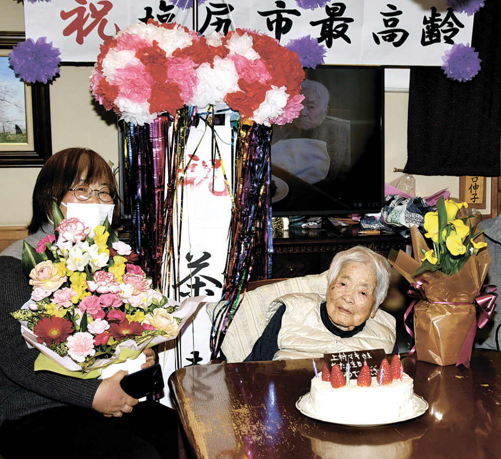 上村さん107歳 茶寿祝う 塩尻のグループホームこまくさが誕生日会