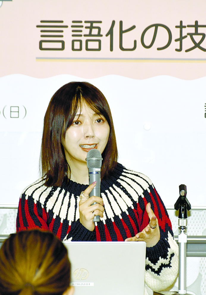 言語化する手法として▽ここが良かった・悪かったと具体例を挙げる▽なぜ気になるかを考える(共感か驚きか)▽実際に書き出してみる―の手順を紹介。「語彙力よりも細分化する力が重要」とし、好みや苦手のものなど自己理解が進み、その上で他人に対して伝えるための整理もつくとした。