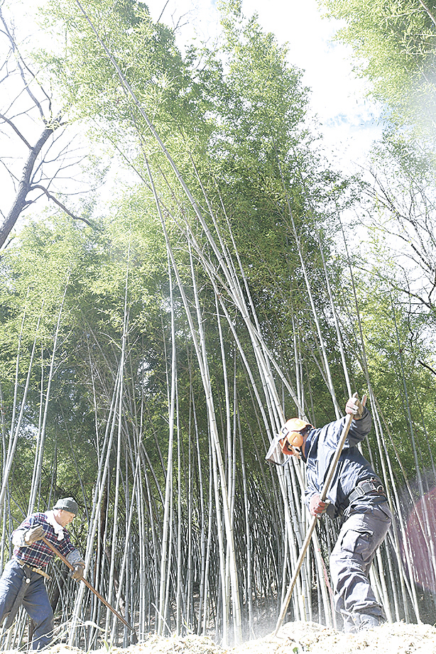 生坂村の生坂ハチクの会などを中心に村内で活動する団体の有志が、上生坂地区にある竹林の整備を進めている。今年に入り、管理されずに荒れていた竹林内の枯れた竹を除去し下草などを刈る作業を続け、約300平方メートルの竹林が見違えるようにきれいになった。3月まで作業を進め、タケノコの生育を期待する。将来的には観光資源として活用することも考えている。