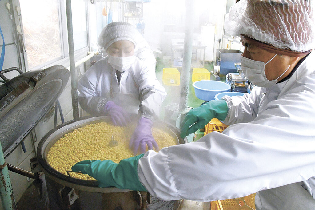 作業は5月上旬まで続き、今年は約2トンを仕込む予定だ。真田秀志代表は「こうじを作るための米の価格が高騰しているので大変だけれど、例年通りの良いみそに仕上がりそう。楽しみにしていただけたら」と話している。